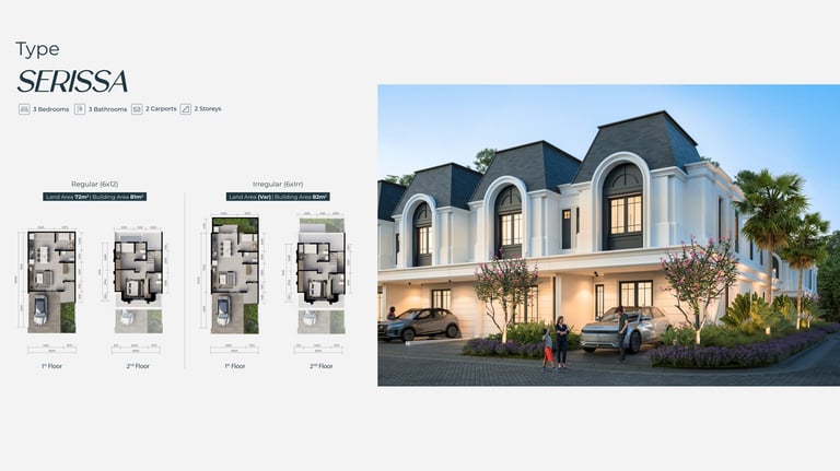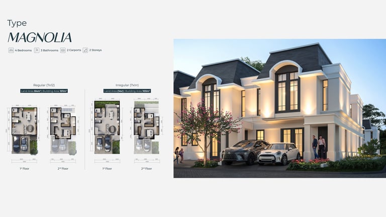 Spesifikasi Luas Bangunan : 109 sqm Luas Tanah : 84 sqm (7×12) Kamar Tidur : 3+1